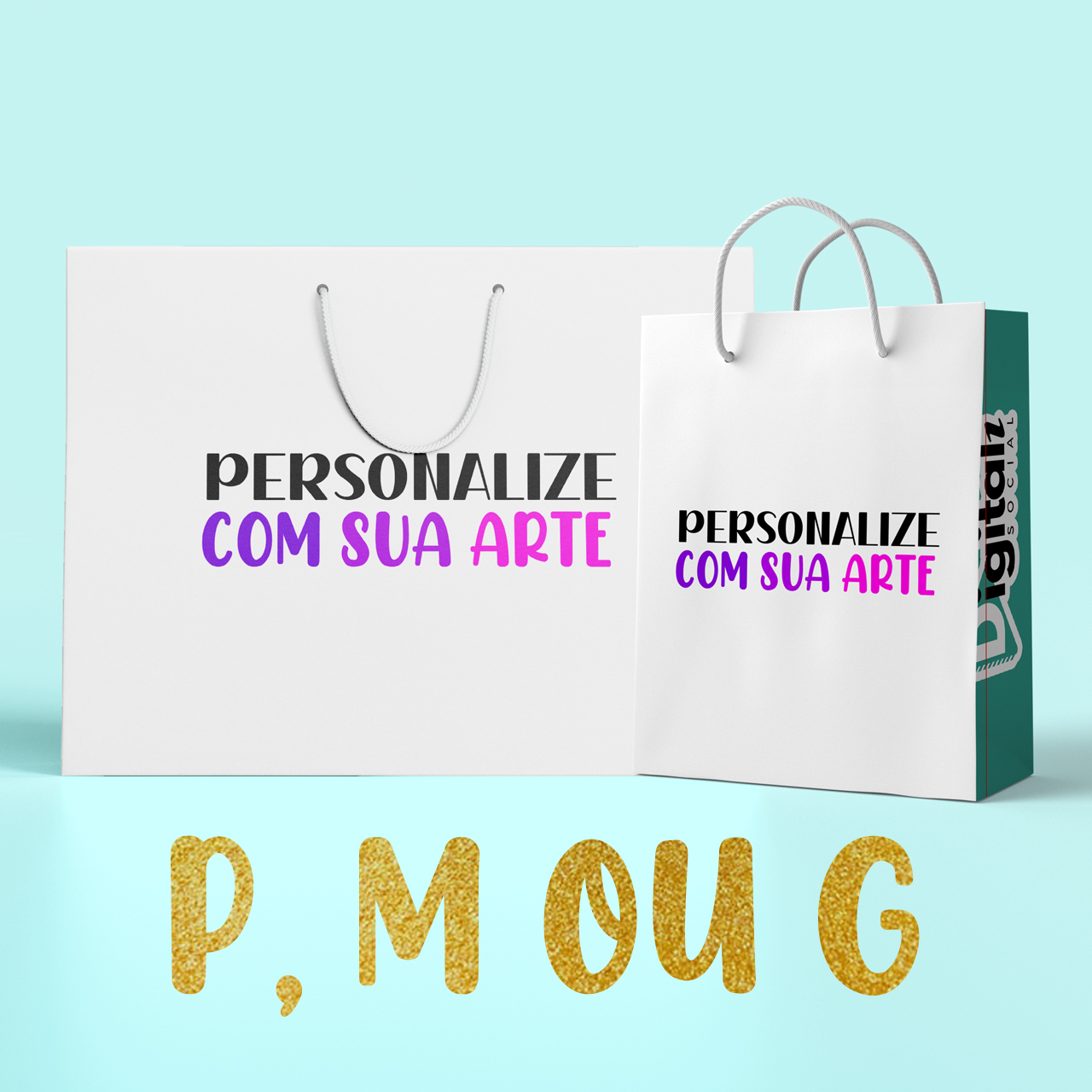 Impressão Colorida, digital, podendo ser impresso em todos lados da sacola.